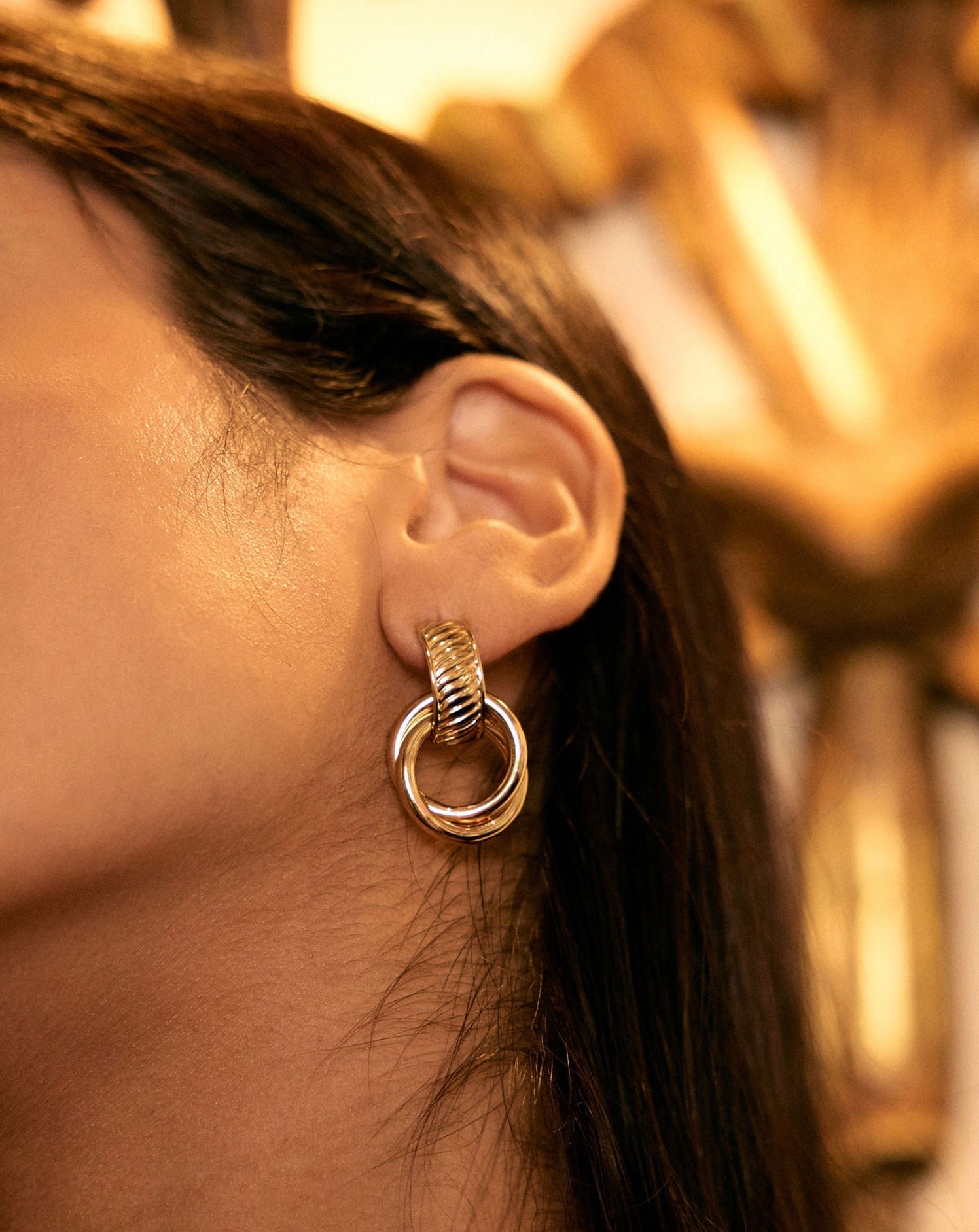 Our Poetry Earrings intertwine in an elegant knot, symbolising the intricate bonds of love and artistry.