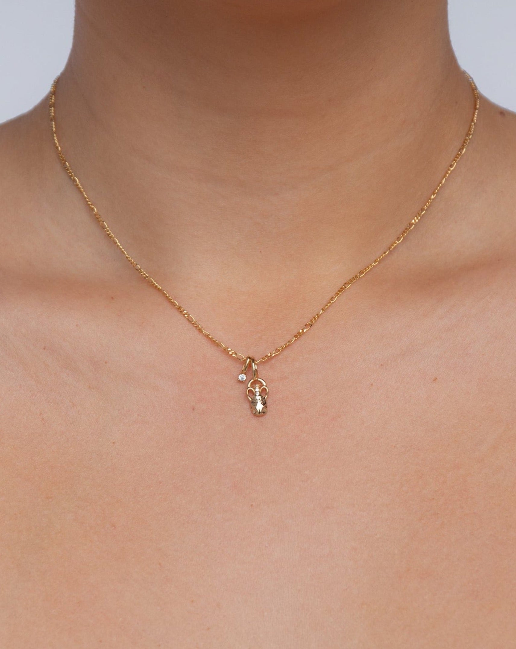 • Pendant features water vessel with cubic zirconia stones