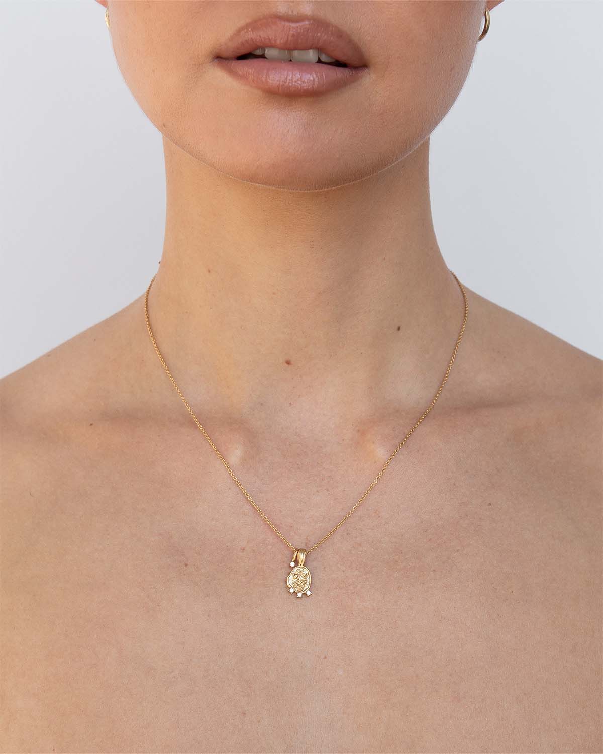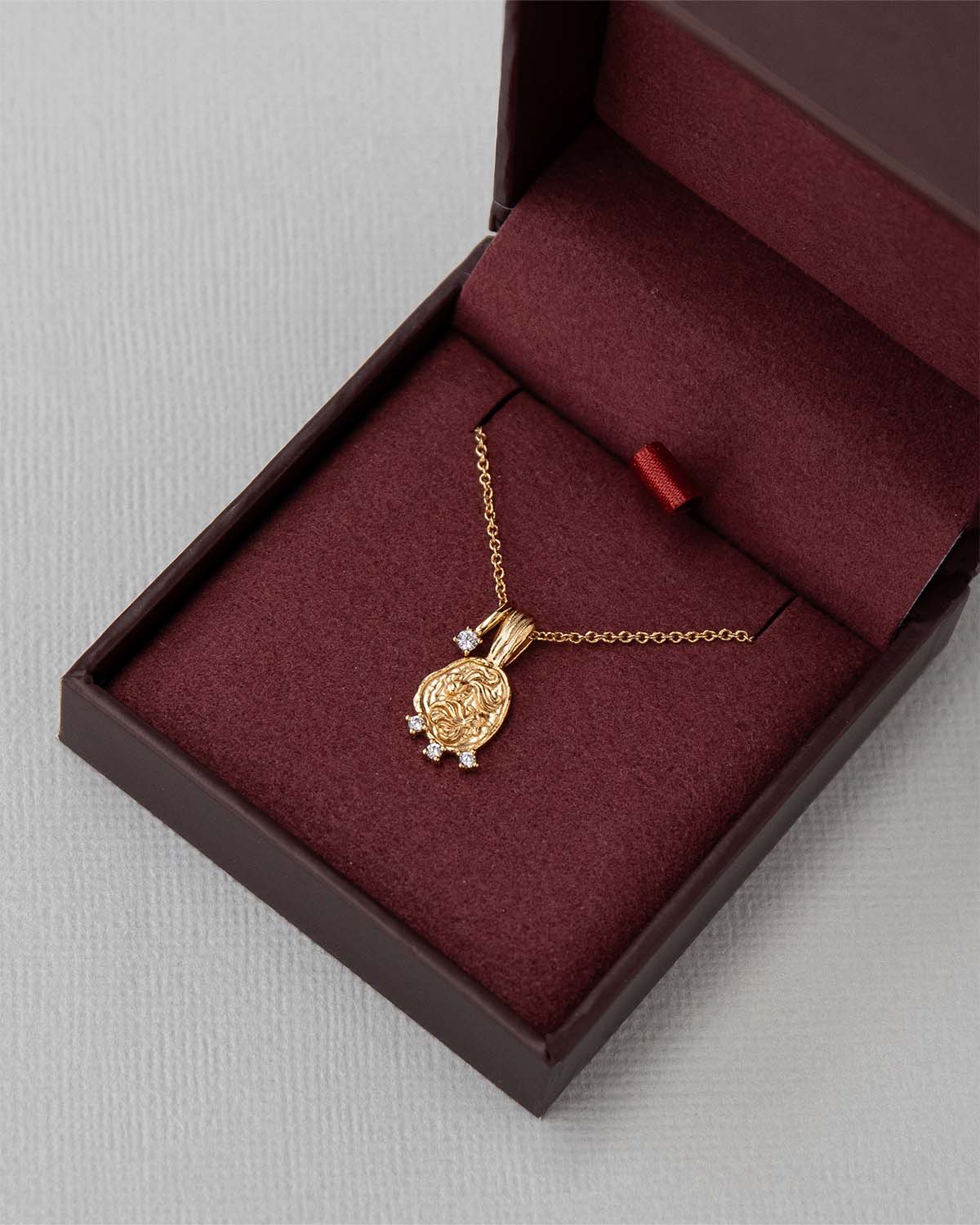 • Pendant features zodiac motif and cubic zirconia stones